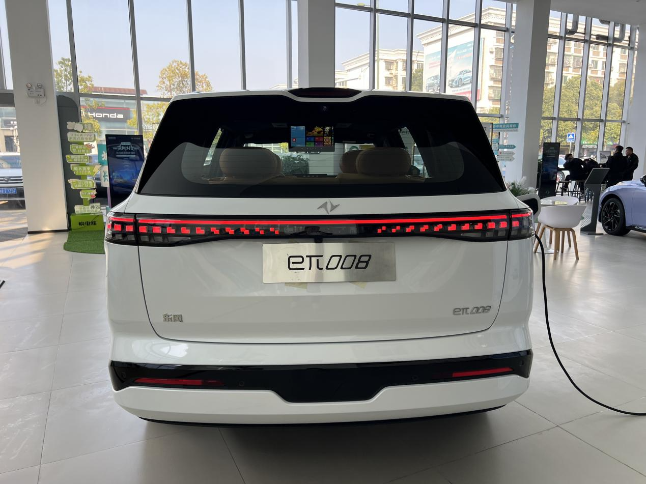 eπ008五座版与六座版都是相同的设计,整体看起来非常霸气,简约的设计语言,贯穿式的大灯与日间行车灯,两者还是融合为一,这辨识度反而更高,毕竟现在大家都用的是分体式设计,这就是一种差异化的体现,起码夜间不会被误认为是某某车型,而且它还是采用了全球首发的隐藏式智能星光格栅。