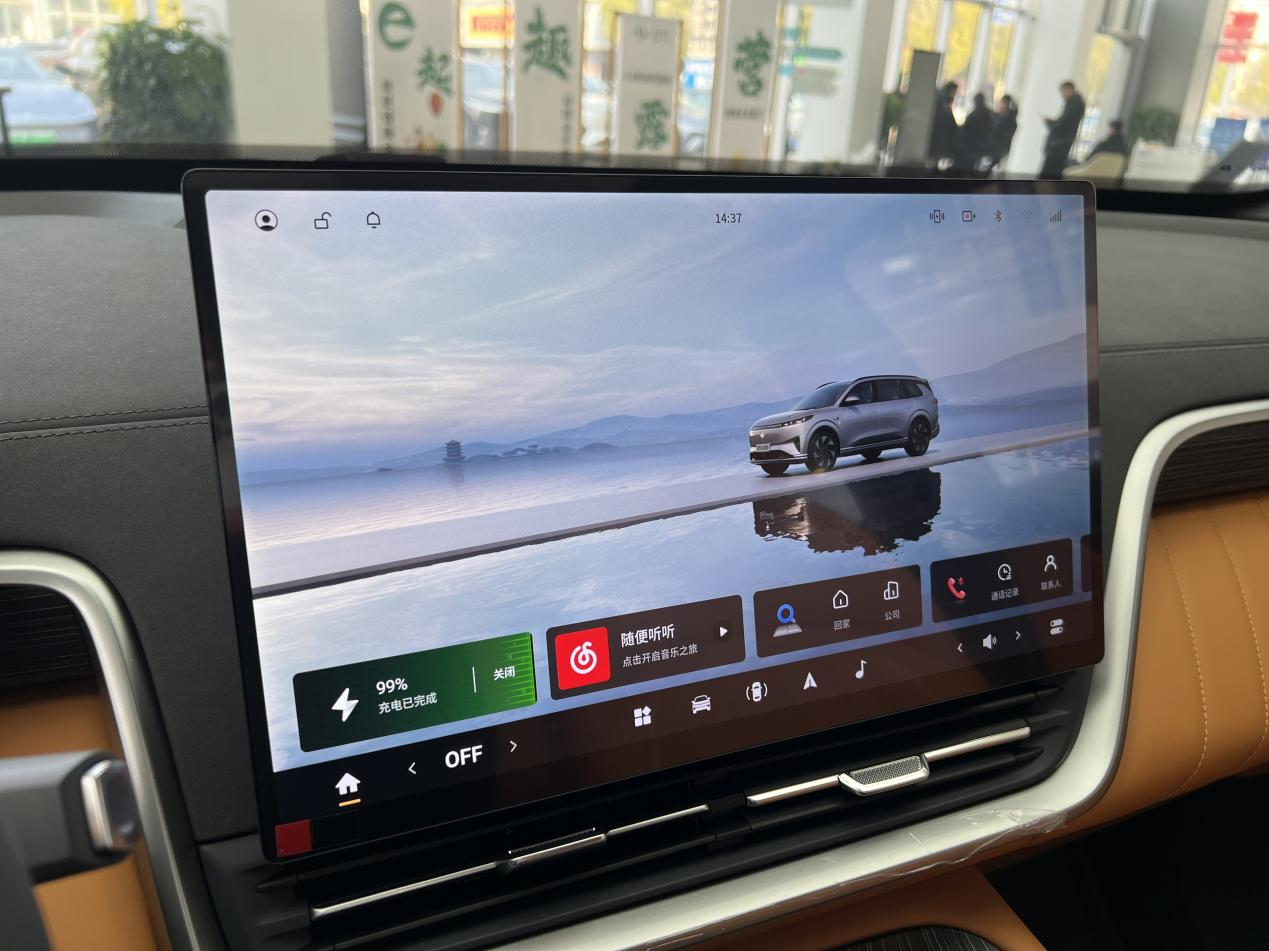 中控屏幕则是15.6英寸的2K超薄中控屏,实际体现下来感觉比iPad还要薄,质感拉满,也让无数对手汗颜的是这还是接近四等宽的边框。内置的eπOS 2.0界面清晰明了也很是简约,空调控制、音量控制常驻在底部,主页还带有多种小卡片插件,整体也是达到了新势力的表现。